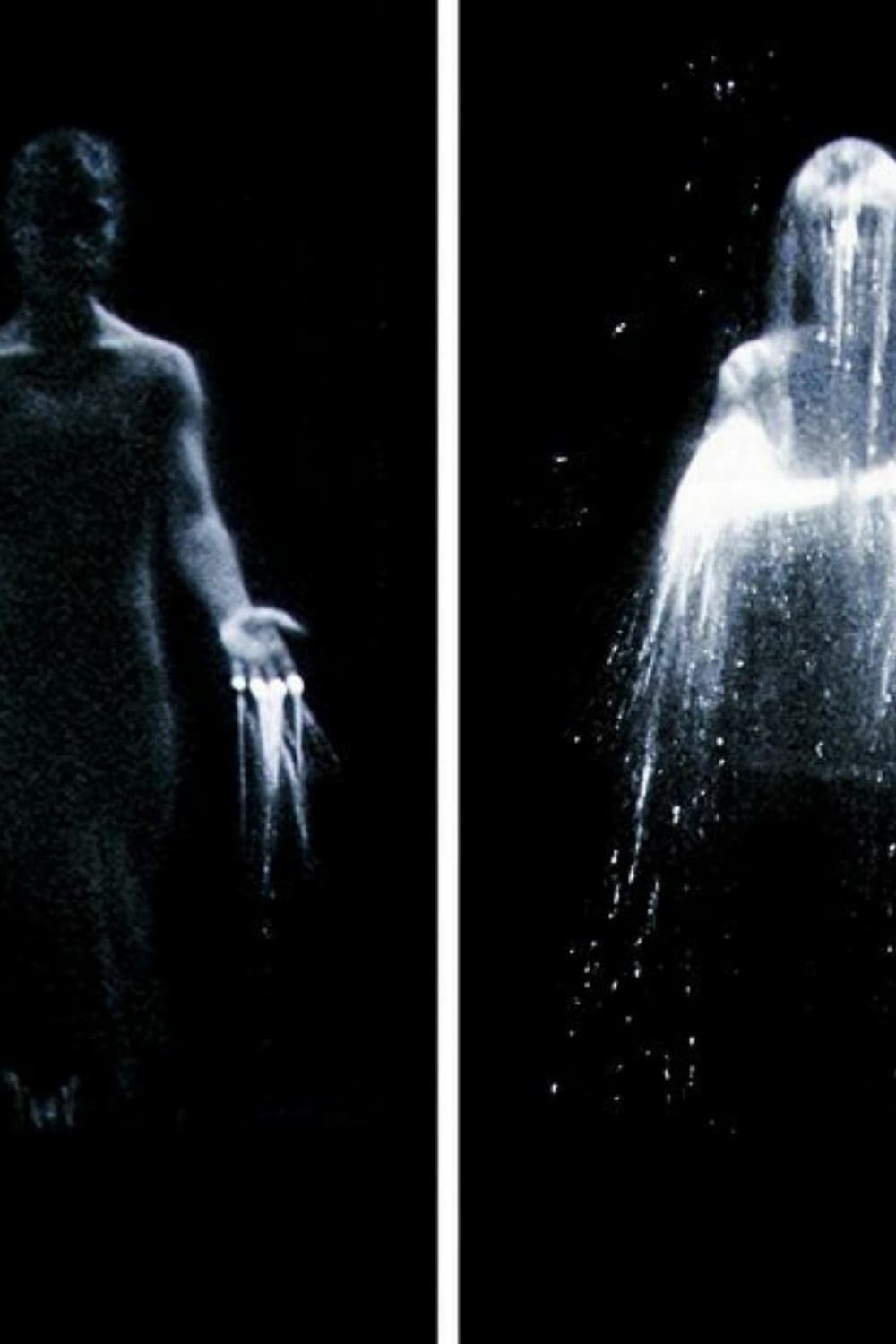 Part of Bill Violas Transfiguration series, The Innocents explores the presence of the dead in the world of the living. The video documents a boy and a girl who slowly approach out of the darkness and into the light. Shown on separate screens, they break through what is, at first, an invisible threshold of water, suggestive of a passage from the spiritual world into a physical plane of existence. Once incarnate, however, all beings realize that their presence is finite, and so the figures eventually turn away from material existence to return from whence they came.