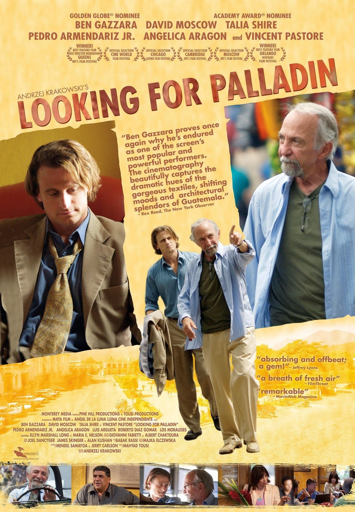Brash young Hollywood talent agent Josh Ross (David Moscow) is dispatched to Guatemala, where he’s assigned to locate missing star Jack Palladin (Ben Gazzara), a man Josh has never met but can’t stand due to Palladin’s long-ago relationship with his late mother. Despite receiving no help from the amused locals, Josh eventually finds his target hiding out as a cook at a restaurant but discovers that persuading the reluctant actor to return to Hollywood will be an uphill climb. Talia Shire costars in this independent comedy.