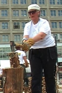 A bus leaves from Sweden to Berlin in Germany. Swedish women will chop wood during an installation by Danish choreographer Dorte Olesen.